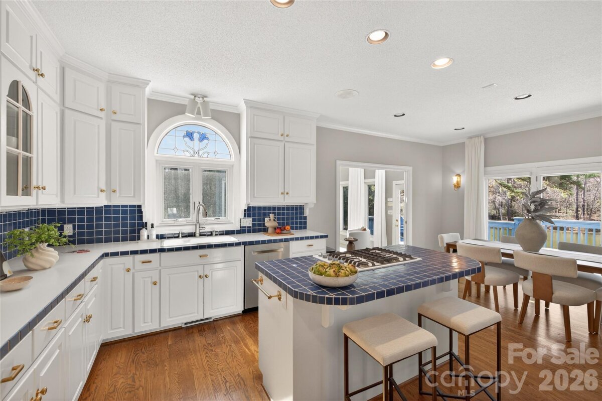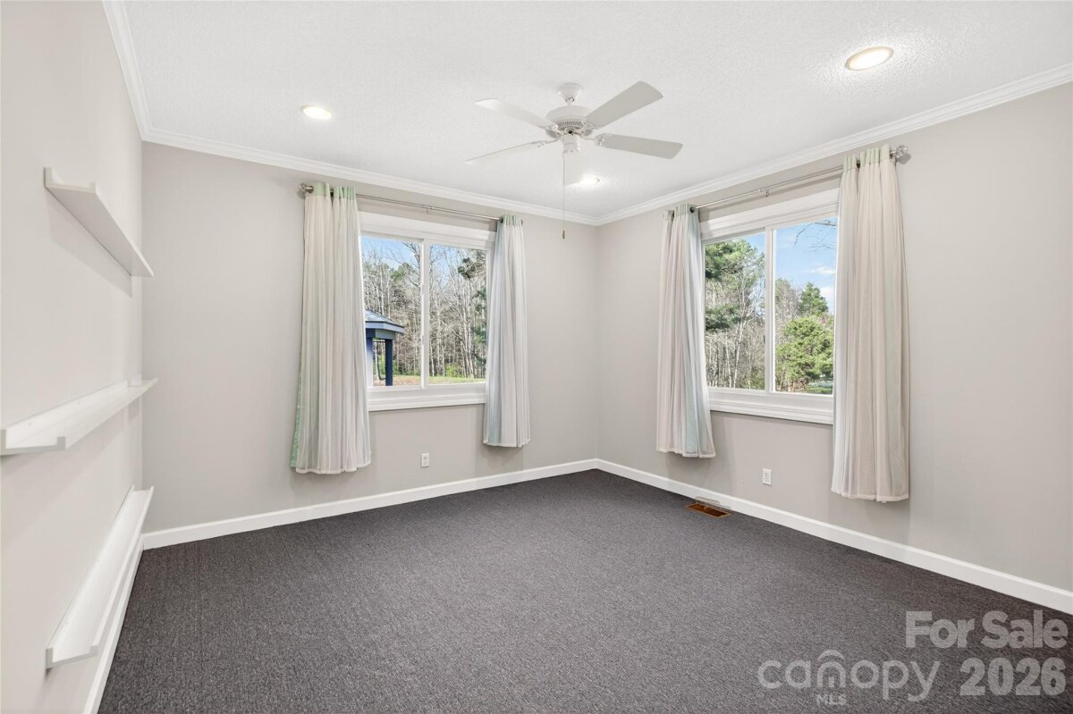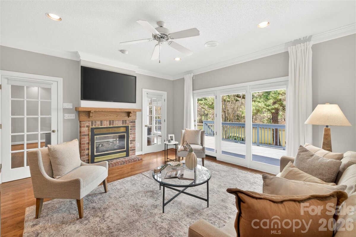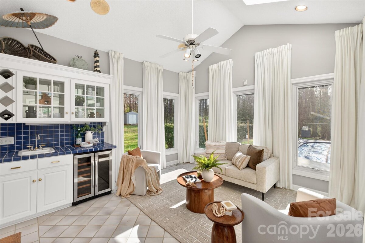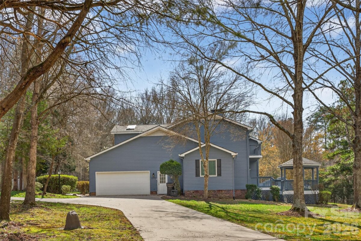 Rare opportunity to own a custom home on nearly 7 acres with no HOA just minutes from Charlotte. Properties with this kind of acreage, privacy, and natural views are becoming harder to find, especially this close to the city. Built in the early 1990s and designed by a well-known local female architect, the home was planned to take advantage of the land, natural light, and surrounding views. With approximately 3,780 square feet, the layout offers generous spaces and a design that feels very different from typical subdivision homes. The main living area features a two-story living room with large windows that bring in natural light and connect the interior with the surrounding landscape. The home includes 3 bedrooms, 2 full bathrooms, and 2 half bathrooms, offering both open gathering spaces and comfortable private areas. The primary suite is oversized and includes its own fireplace, a large bathroom, and separate his-and-her closets. Just off the main living area, the sunroom overlooks the pool and backyard, creating a quiet place to sit and enjoy the view of the property. A standout feature is the private office with its own exterior entrance and separate half bathroom, making it ideal for running a business from home, meeting clients privately, or creating a dedicated workspace. Several important updates have already been completed, including new roof (2024), HVAC (2021), new windows, new gutters with gutter guards, and a new deck (2025). The home also offers an oversized garage and a large driveway with plenty of space for parking. Outside, the property opens up to nearly 7 acres of land with an in-ground pool, a new deck for outdoor gatherings, and a stocked pond where turtles, blue herons, and otters are often seen. The setting offers a level of quiet and privacy that is increasingly difficult to find this close to Charlotte. Homes offering this much land, privacy, and character in this location rarely come on the market. You really have to see it in person to appreciate the space, setting, and potential this property offers.