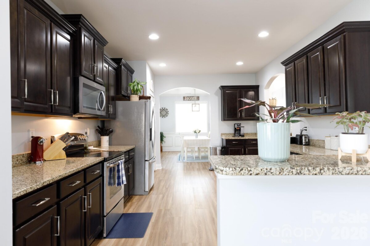 Absolutely Stunning and Spacious home with beautiful creek, wooded and greenspace views. Enjoy your coffee or a cocktail on the deck overlooking natural beauty. Wander down the stone staircase which leads you to dual bridges over the creek. This is one of the few gated communities in the Rock Hill area with sidewalks and streetlights throughout for those who like to walk, run and bicycle or just stop and visit with neighbors. Whip up a great meal in the huge kitchen, perfect for entertaining and the holidays! This gorgeous home is well appointed with lots of natural light, new flooring, fresh paint, stainless steel appliances and open concept living at it's very best! The primary boasts a large ensuite bath and generous walk-in closet. The laundry room is located on the upper level convenient to the four bedrooms upstairs. New lighting, new dishwasher, new garbage disposal, new garage door opening system, newly added garage storage and a new mailbox! The home is very well maintained with twice yearly HVAC maintenance services and a transferable termite bond in place. You'll be so proud to make this house in sought after Chapel Gate, Your HOME!!!