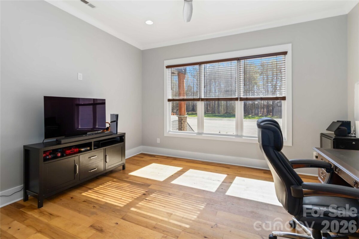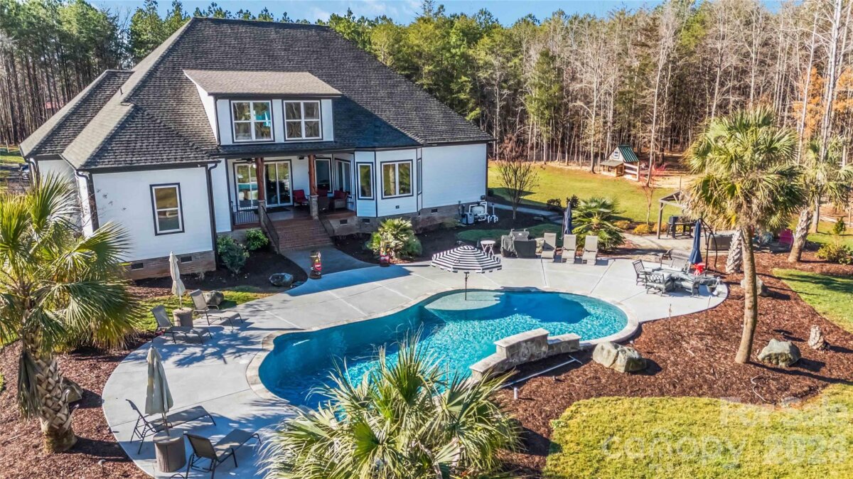 $400,000 Price Improvement!! The sellers are ready to open the next chapter in their lives and have priced this to sell- don't miss out on this one. Tucked away on nearly 12 private acres, this exceptional luxury estate offers the perfect balance of seclusion and convenience—just 10 minutes to Rock Hill and 15 minutes to Lake Wylie. A stunning koi pond and dual waterfalls welcome you at the front of the home, setting the tone for the thoughtfully designed custom walkways that lead through the property. And don't miss the custom-made porch posts claimed from trees on the property! The main residence features 5 bedrooms and 5 full baths, with all bedrooms conveniently located on the first floor in a split plan design. The spacious primary bedroom leads to a large ensuite bathroom with soaking tub and oversized tile shower. A second owner bedroom across the home also has an ensuite bathroom. Off the foyer, the dedicated office with custom-made sliding doors provides an ideal work-from-home space. An open concept allows for ease of gathering together on the first floor. The Sonos® surround sound allows you to experience a cinema-like movie in the family room and listen to your choice of music in any of the included rooms. Upstairs, enjoy a second living space with a built-in bar, a full bath, and an exercise or flex room—perfect for entertaining or extended living. The attic provides plenty of room for storage. Additional highlights include two tankless water heaters and an additional three electric backups. Outdoor living shines with a covered back porch opening to an expansive patio, complete with a saltwater in-ground pool and waterfall feature, plus a covered pergola ideal for seating and bonfires. There is partial fencing which currently houses the goats, but would be ready for your chickens, sheep or pigs! The 11.8 acres allows for a multitude of activities not limited to boarding horses, hunting and riding off road vehicles. That's not all...the property also includes a large multi-use 40' x 40' building with a heated office and bathroom, currently used for a business. There is additional parking around this building and a dedicated RV parking area with full hookups. A truly rare and versatile property offering luxury, privacy, and endless possibilities.