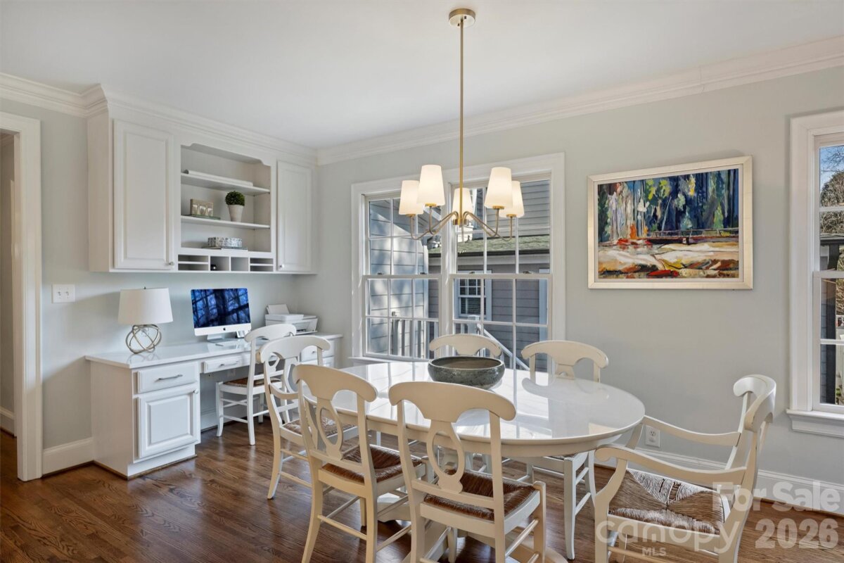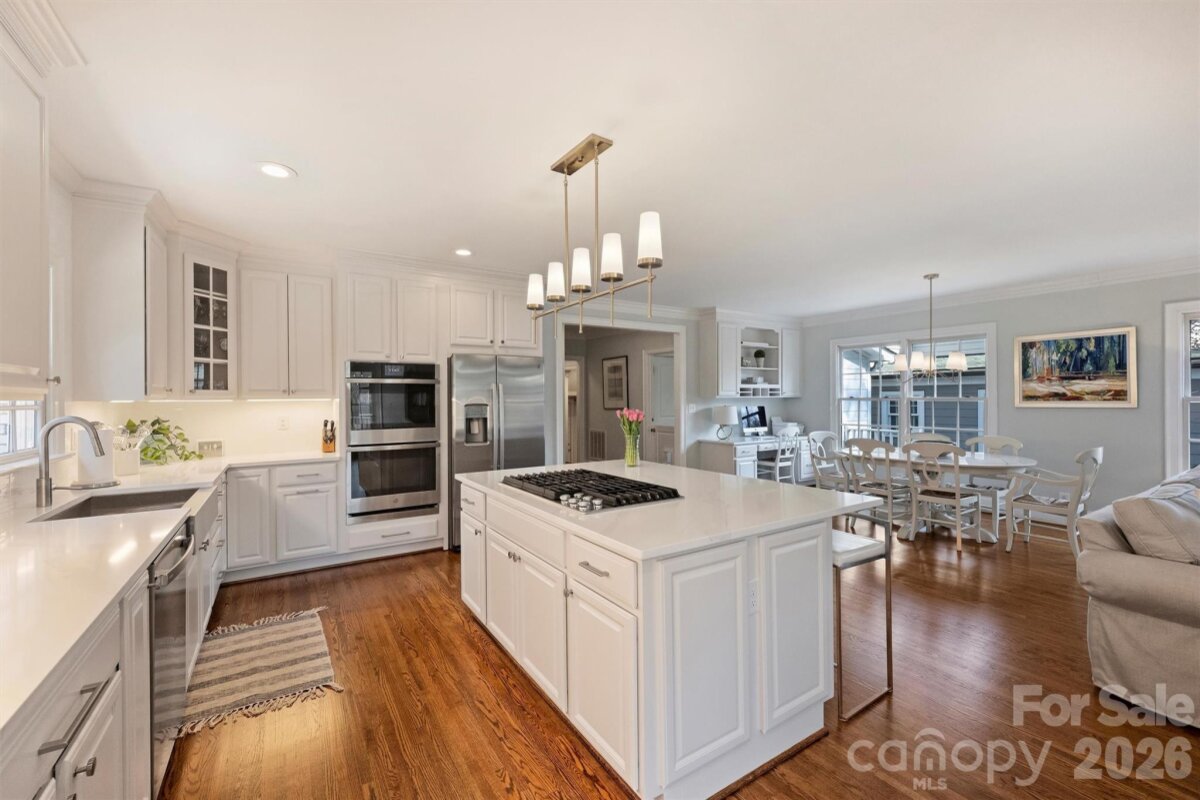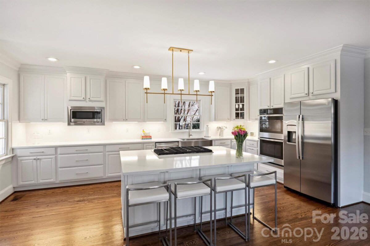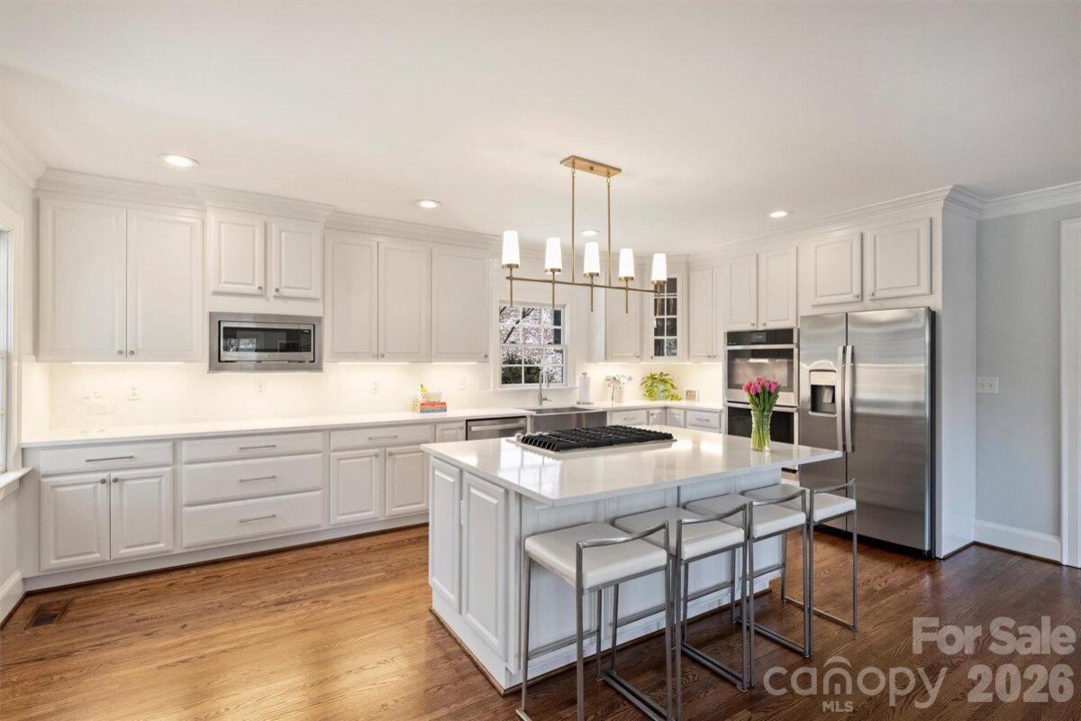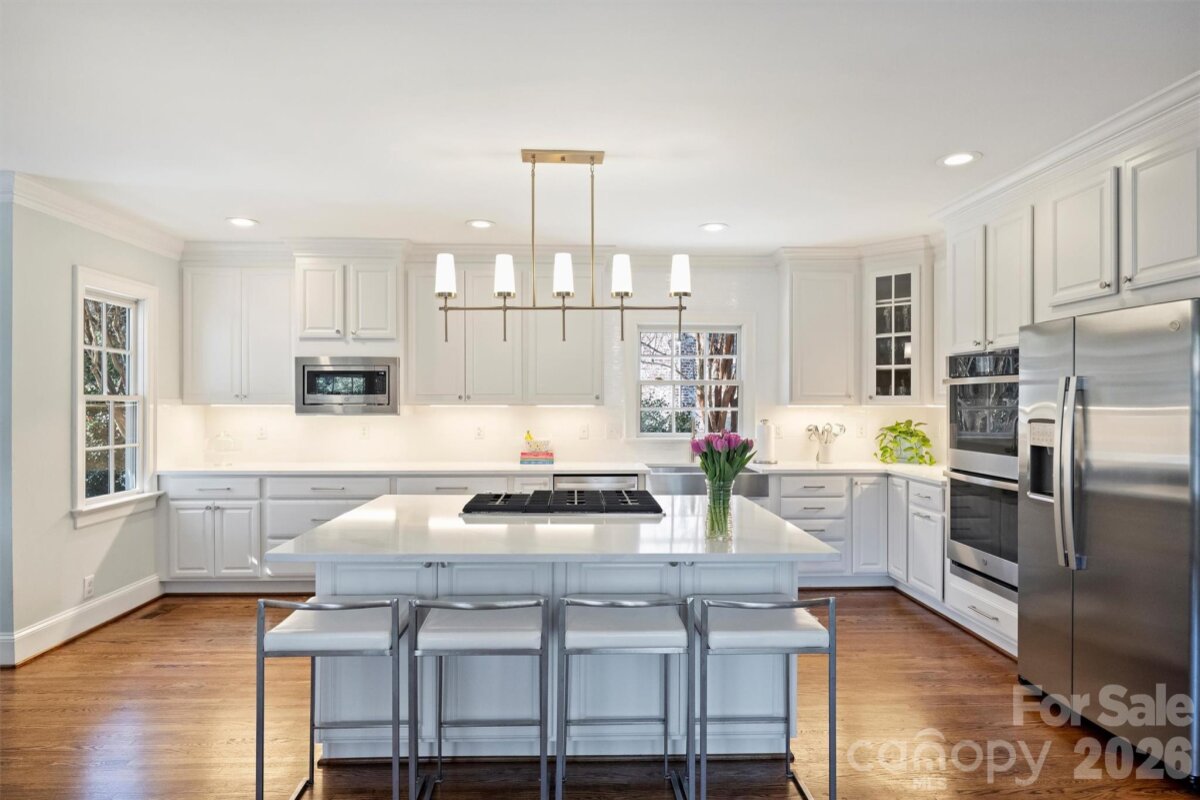 Located in the heart of Myers Park, this classic two-story home blends timeless charm with thoughtful modern updates. Kitchen refresh completed February 2026 showcases stunning new countertops, new backsplash, new stainless steel appliances, new sink and faucet, painted cabinetry, updated hardware, and beautifully refinished first-floor hardwoods. Fresh neutral paint and hardwood flooring throughout create a warm, cohesive feel. Formal living and dining rooms set the stage for effortless entertaining, while the sun-filled kitchen, breakfast area, and family room offer comfortable everyday living. A nearby playroom or home office adds flexibility. Upstairs, the generous primary suite features a large closet and a refreshed bath with new countertop, sinks, fixtures, and mirror, complemented by three additional bedrooms and two full baths. Step outside to a spectacular screened porch overlooking a flat, landscaped 0.4-acre yard — perfect for relaxing or hosting guests. Recent improvements also include new light fixtures, ceiling fans, and new carpet in the primary suite and playroom. Walk to MPCC, Selwyn, AG, MPHS, and Selwyn Corners’ shops and restaurants. A truly exceptional location and lifestyle opportunity.