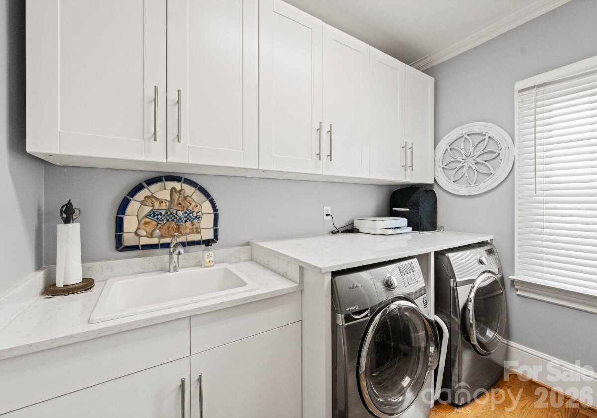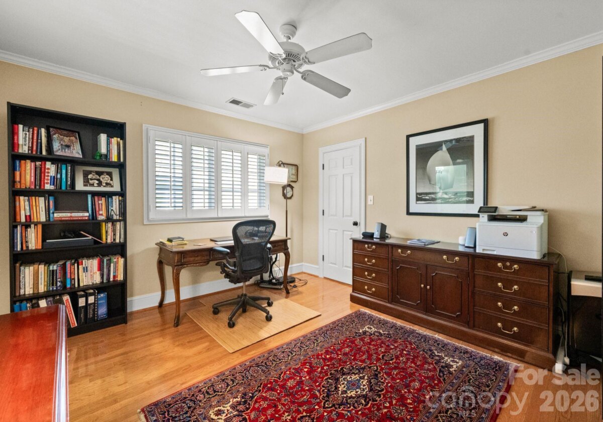 Welcome to this classic traditional home filled with natural light, charm, and style. A welcoming foyer off the covered front porch is flanked by formal living and dining rooms, leading into a stunning two-story great room with fireplace and built-ins that seamlessly opens to the updated kitchen with high end appliances, large island, wet bar walk in pantry and breakfast area. The main-level primary suite features dual walk-in closets and a spacious, updated bath. A convenient laundry room with sink is located just off the attached garage. Enjoy year-round living on the inviting screened porch with oversized shutters, which opens to a wooden deck overlooking a beautifully manicured, private, fenced backyard. Upstairs, two staircases lead to four additional bedrooms, two full baths, an oversized yet cozy bonus room, and a versatile rec space perfect for a home gym or playroom. Ideally located in a sought-after neighborhood close to SouthPark, shopping, dining, and top-rated schools.