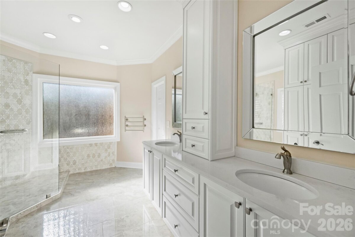 Privately gated and thoughtfully designed for true lock-and-leave living, this all-brick home on Colony Road is distinguished by a stately brick perimeter wall that enhances privacy, security, and architectural presence in the heart of SouthPark. With generous interior spaces and a fully enclosed private courtyard, the home offers exceptional privacy and ease of living. Hardwood floors span the main level, complemented by fresh interior paint and timeless finishes throughout. Formal living and dining rooms provide elegant, well-proportioned spaces for gatherings and everyday living, while the inviting family room features custom built-ins, a gas fireplace, wet bar, and direct access to the private courtyard—creating a seamless indoor-outdoor connection. The updated kitchen is anchored by a generous conversation island and includes stainless steel appliances, tile backsplash, and sun-filled windows. A striking central staircase adds architectural presence, while a secondary rear staircase enhances flow and functionality throughout the home. Upstairs, the layout offers exceptional flexibility with two spacious primary suites—one equally suited as a bonus room, private guest retreat, or executive home office—along with two additional bedrooms connected by a Jack-and-Jill bath. The primary suite features a luxuriously renovated bath, designed for a refined daily experience. Recent improvements further elevate peace of mind, including a new roof, two new HVAC systems, and refreshed exterior trim and woodwork. This SouthPark home is defined by thoughtful updates, functional elegance, and long-term ease of living. A comprehensive list of system and infrastructure improvements completed within the past two years is available.
