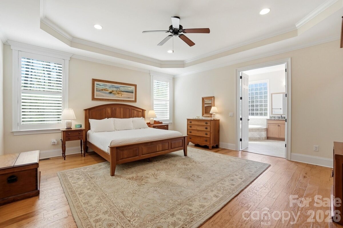 ABSOLUTELY IMMACULATE 3BR/3BTH Toll Brothers 1 story ranch home offering a great combination of space, quality, and livability in a quiet, established setting. Long driveway leads up to this private, premium homesite on almost 1 acre. Heavily upgraded Audubon open floorplan features a gorgeous kitchen with gourmet castled cabinets, granite tops, KitchenAid 5 burner gas cooktop, exhaust hood & wall oven, 60/40 sink, Kohler fixtures, kitchen island with bar seating and stylish pendant lights, pullouts, under cabinet lighting, butler pantry & walk in pantry. Beautiful 5" Nottoway hardwoods, color-Prairie Dust, in most living areas. The great room stands out with 14' ceilings & gas fireplace. Huge owner's suite with trey ceiling, spacious closet with custom organizers. Owner's bath has dual vanities, large corner soaking tub, walk in shower & more Kohler fixtures. Two more secondary bedrooms are generously sized and have ensuite baths. Additional features include plantation shutters throughout, a whole-home water filtration system, tankless water heater with re-circulator. 3-car garage with both front and side-load access. The backyard is designed to be easy to enjoy, with mature landscaping, irrigation, a covered patio, and an extended paver patio and walkway. Weddington Schools!