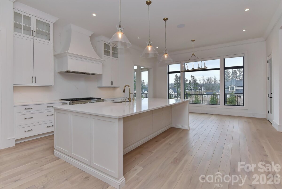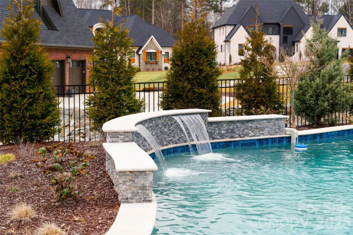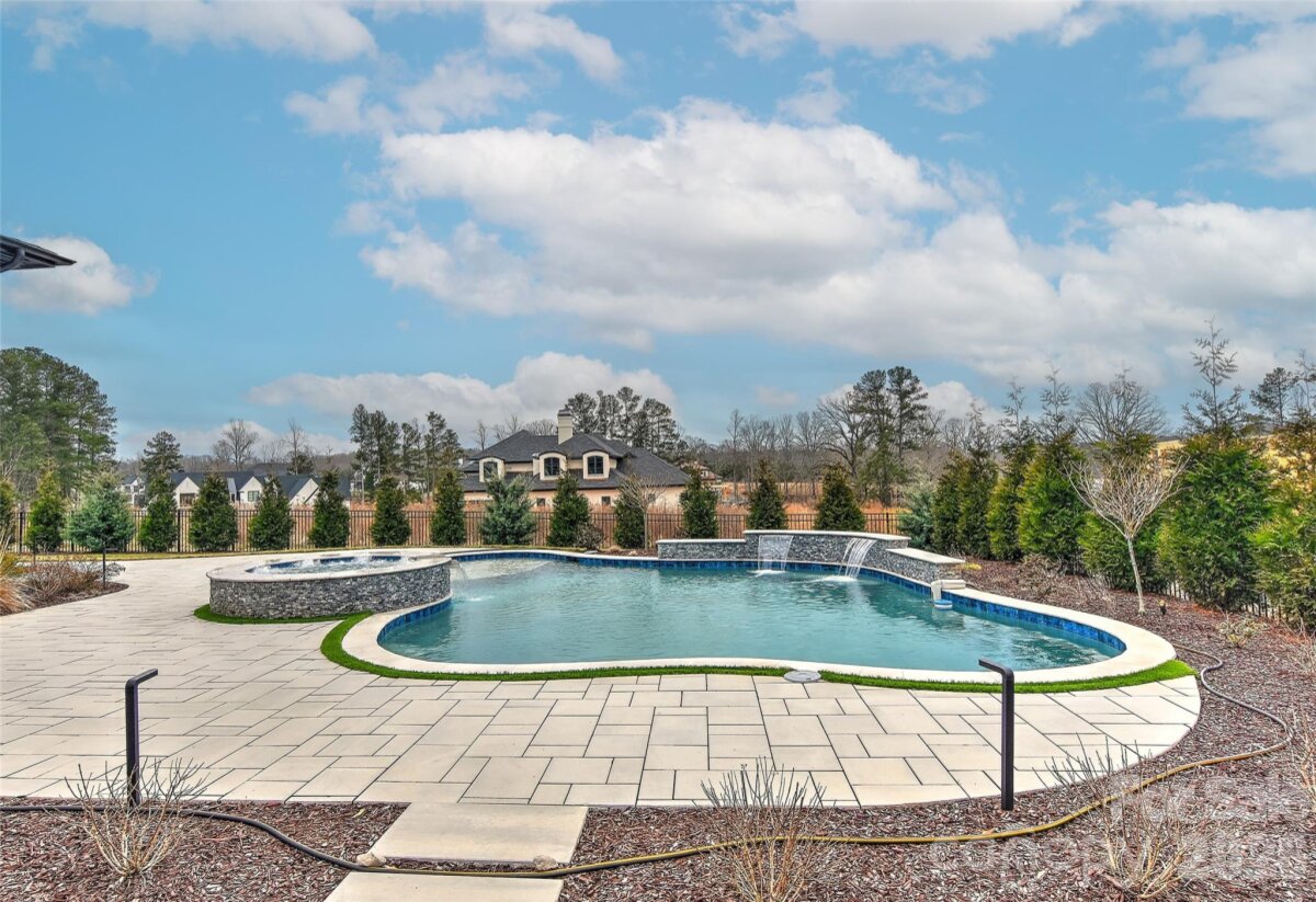 Exceptional custom luxury new construction offering custom salt water pool & over 5,300 heated square feet with 4 bedrooms and 4.5 baths on a Northeast facing, beautifully landscaped, fenced .74-acre lot. Soaring 11.5’ ceilings on the main level and 10’+ upstairs are complemented by custom/coffered ceilings in the family room, dining room, office, and primary suite. All windows and doors are 8’ with a dramatic 10’ front entry and custom black glass doors at the office and scullery/2nd kitchen. Linear fireplace in living room. Stunning upgraded curved staircase makes a grand statement. Chef’s kitchen features seamless waterfall quartz island and backsplash, floor-to-ceiling Cuisine Ideal cabinetry, custom wood hood, and top-tier appliances including Thermador column refrigeration, Sub-Zero with paneled fronts, and Miele appliances in the scullery. Two-layer bar enhances entertaining. Premium finishes include German white oak hardwood flooring, imported upgraded custom designer tile, real marble fireplace surround, Circa/Visual Comfort lighting, upgraded 3†LED recessed lighting, and Kohler gold/brass hardware. Luxurious primary bath offers an infinity-style shower with advanced Kohler electronic system and designer glass sinks. Outdoor living is extraordinary with a $350K–$400K investment in a saltwater pool, extensive hardscape, irrigation, lighting, and feng shui–inspired landscaping. Covered porch includes fireplace, outdoor kitchen with grill and hood, wood ceiling, tile flooring, MagnaTrack motorized shades, and opens to an expansive patio. Expanded driveway and garages with upgraded doors. Additional features: ~900 sq ft attic for future expansion, state-of-the-art security with 9 wired cameras, full home automation (lighting, HVAC, doors, shades, AV), and fully automated Hunter Douglas window treatments. Great location in popular Weddington School District! Experience elevated living in this breathtaking luxury community. Twin Lakes delivers a resort-style lifestyle with scenic walking trails, a waterfront gazebo, championship pickleball courts, and a community dock—perfect for kayaking, canoeing, and paddle boarding. A meticulously upgraded, one-of-a-kind luxury residence. Ready NOW for quick close & immediate occupany!