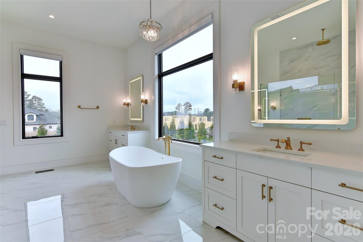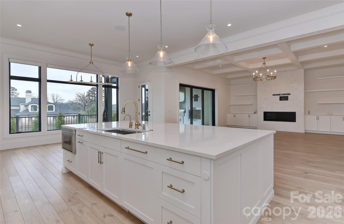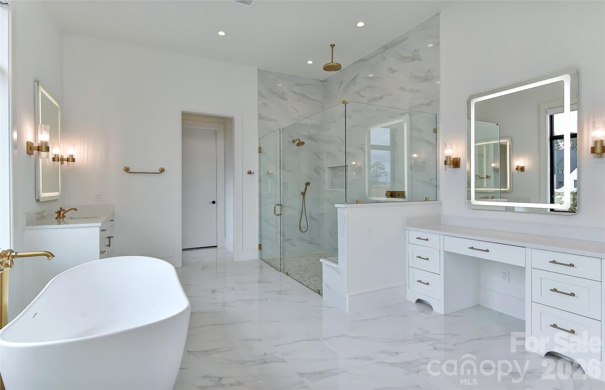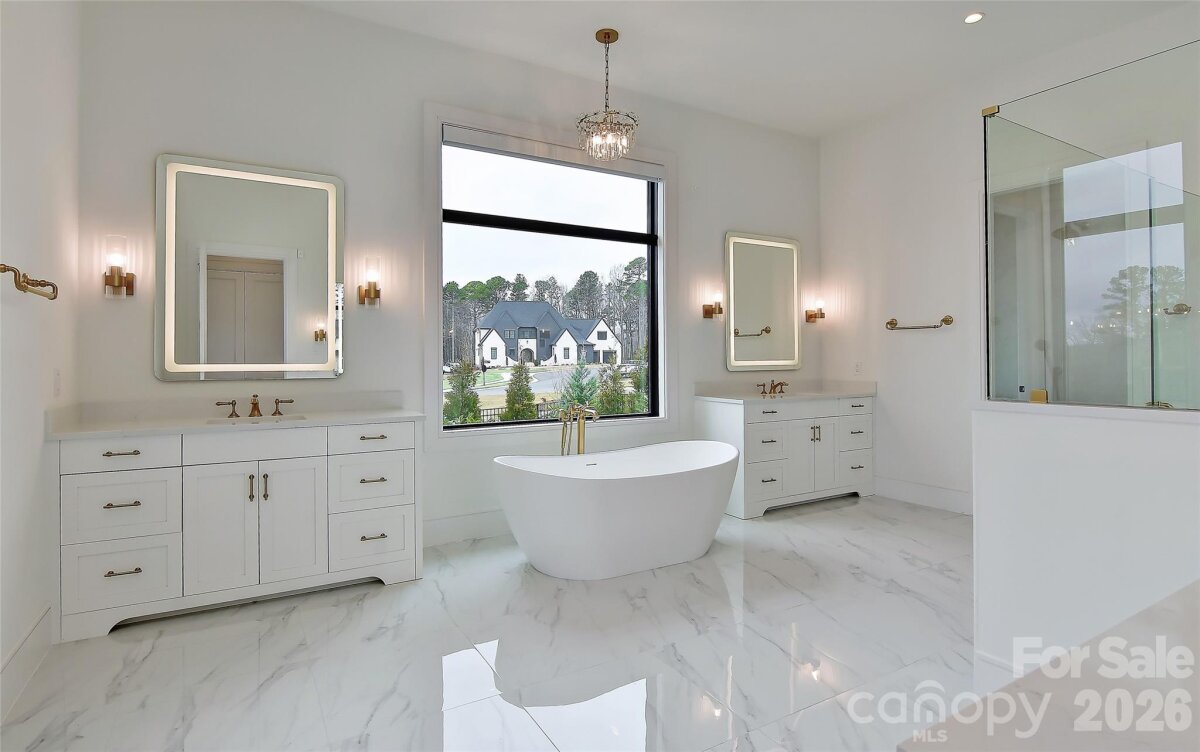Exceptional custom luxury new construction offering custom salt water pool & over 5,300 heated square feet with 4 bedrooms and 4.5 baths on a Northeast facing, beautifully landscaped, fenced .74-acre lot. Soaring 11.5’ ceilings on the main level and 10’+ upstairs are complemented by custom/coffered ceilings in the family room, dining room, office, and primary suite. All windows and doors are 8’ with a dramatic 10’ front entry and custom black glass doors at the office and scullery/2nd kitchen. Linear fireplace in living room. Stunning upgraded curved staircase makes a grand statement. Chef’s kitchen features seamless waterfall quartz island and backsplash, floor-to-ceiling Cuisine Ideal cabinetry, custom wood hood, and top-tier appliances including Thermador column refrigeration, Sub-Zero with paneled fronts, and Miele appliances in the scullery. Two-layer bar enhances entertaining. Premium finishes include German white oak hardwood flooring, imported upgraded custom designer tile, real marble fireplace surround, Circa/Visual Comfort lighting, upgraded 3†LED recessed lighting, and Kohler gold/brass hardware. Luxurious primary bath offers an infinity-style shower with advanced Kohler electronic system and designer glass sinks. Outdoor living is extraordinary with a $350K–$400K investment in a saltwater pool, extensive hardscape, irrigation, lighting, and feng shui–inspired landscaping. Covered porch includes fireplace, outdoor kitchen with grill and hood, wood ceiling, tile flooring, MagnaTrack motorized shades, and opens to an expansive patio. Expanded driveway and garages with upgraded doors. Additional features: ~900 sq ft attic for future expansion, state-of-the-art security with 9 wired cameras, full home automation (lighting, HVAC, doors, shades, AV), and fully automated Hunter Douglas window treatments. Great location in popular Weddington School District! Experience elevated living in this breathtaking luxury community. Twin Lakes delivers a resort-style lifestyle with scenic walking trails, a waterfront gazebo, championship pickleball courts, and a community dock—perfect for kayaking, canoeing, and paddle boarding. A meticulously upgraded, one-of-a-kind luxury residence. Ready NOW for quick close & immediate occupany!