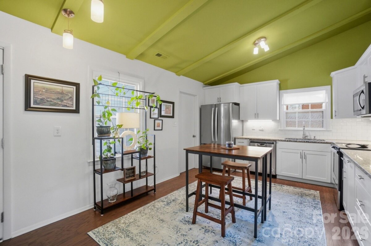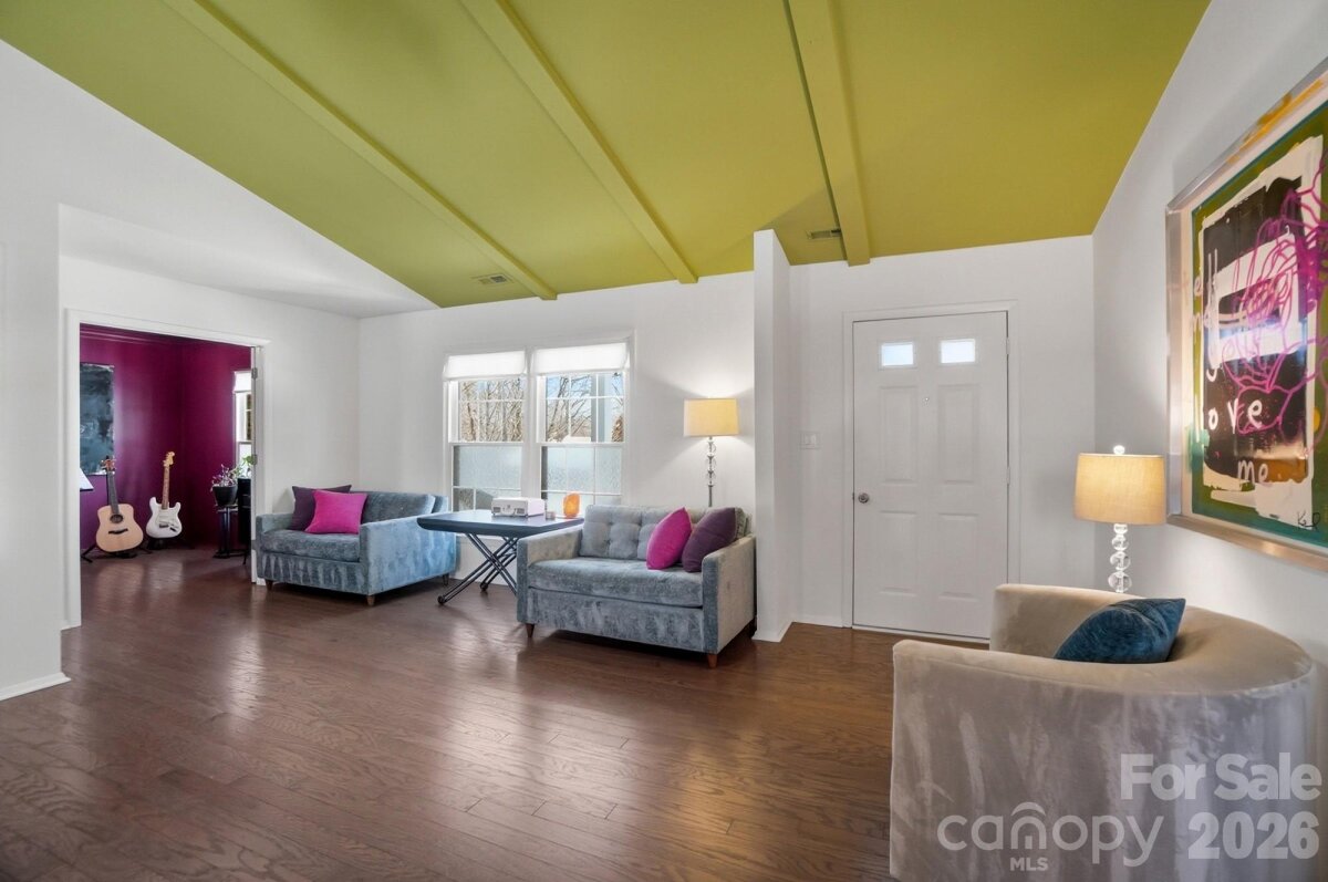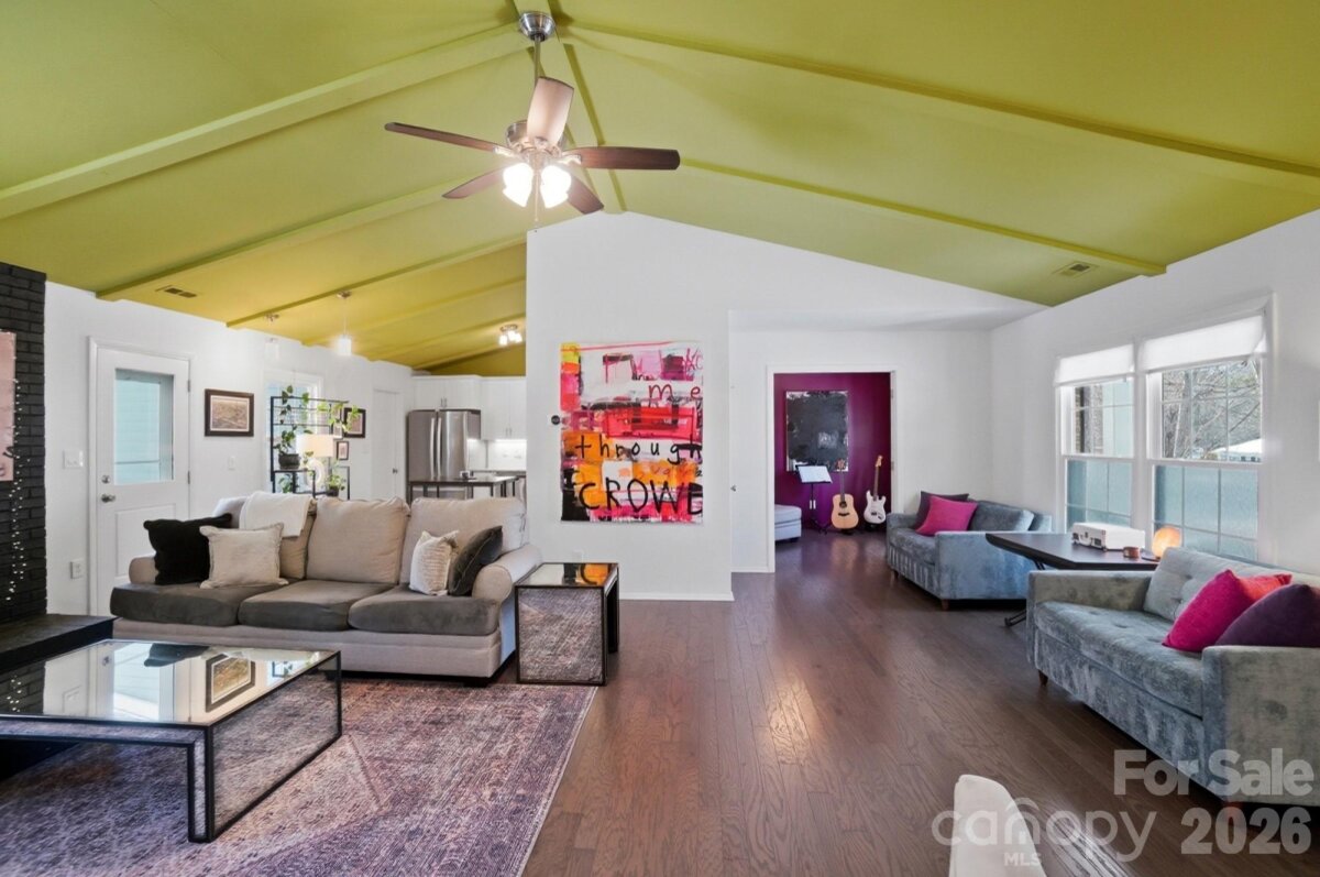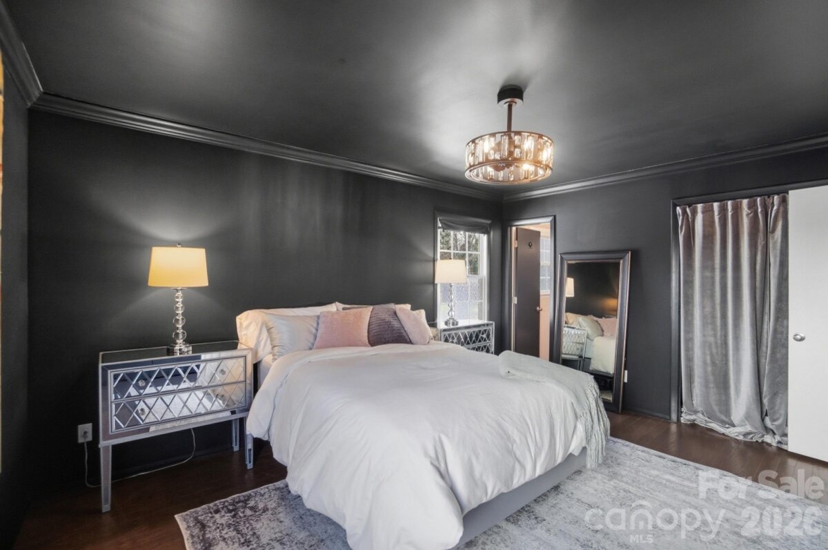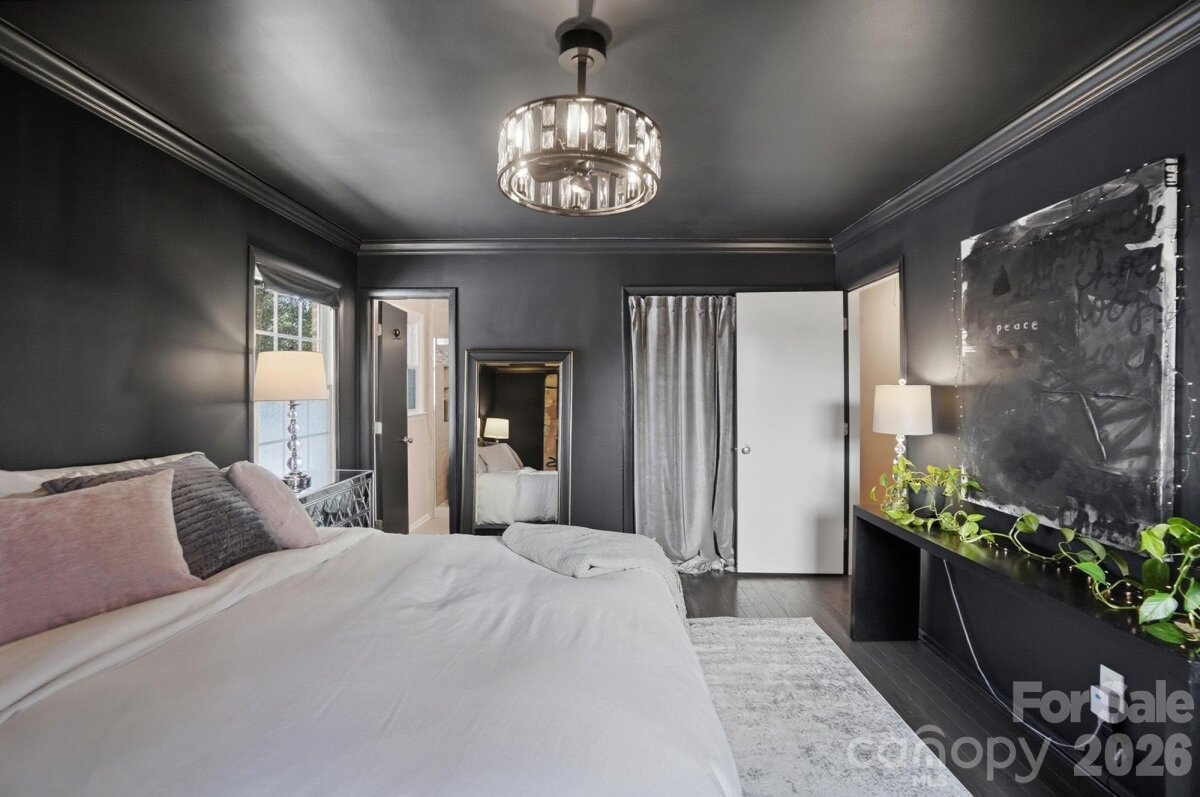 Classic full-brick ranch nestled on a quiet, elevated cul-de-sac street in the highly desirable Sardis Forest neighborhood, offering timeless curb appeal, a welcoming front porch, and a peaceful residential setting. Inside, the home features a bright, open layout with hardwood floors throughout, newer windows, vaulted ceilings, updated lighting, and a well-designed flow that is both functional and inviting. The foyer opens seamlessly to the main living spaces, including a spacious living room centered around a floor-to-ceiling masonry fireplace with new gas logs and direct access to the rear patio, creating a calm and comfortable atmosphere for everyday living. An open kitchen and dining area showcase timeless white cabinetry with soft-close drawers and cabinets, a smooth-top range, and ample workspace for everyday living and entertaining. Just off the main living area, a dedicated office or study with French doors provides an ideal work-from-home or flex space. The private primary suite is tucked at the rear of the home and features an updated ensuite bath. Two well-sized secondary bedrooms are located at the front of the home and share a full hall bath. Custom adjustable closet systems throughout are designed for flexibility and organization. All three bedrooms, as well as the study, include crown molding, adding a refined architectural touch. Outdoors, the fenced backyard is private and park-like, featuring a paver patio and fire pit, perfect for relaxing or gathering with friends. Solid brick construction, a single-story layout, and thoughtful updates throughout make this home move-in ready. Optional Sardis Forest Swim Club membership may be available. The home is ideally located near shopping, dining, parks, and walkable greenway access. Don’t miss this rare opportunity to own a classic ranch in one of South Charlotte’s most established neighborhoods.